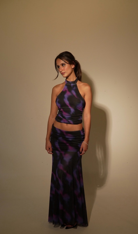 Conjunto top frente único + saia longa Tule tie dye Elástico na cintura a saia - veste 36 Top veste sutiã 40-42 - forma pequena
