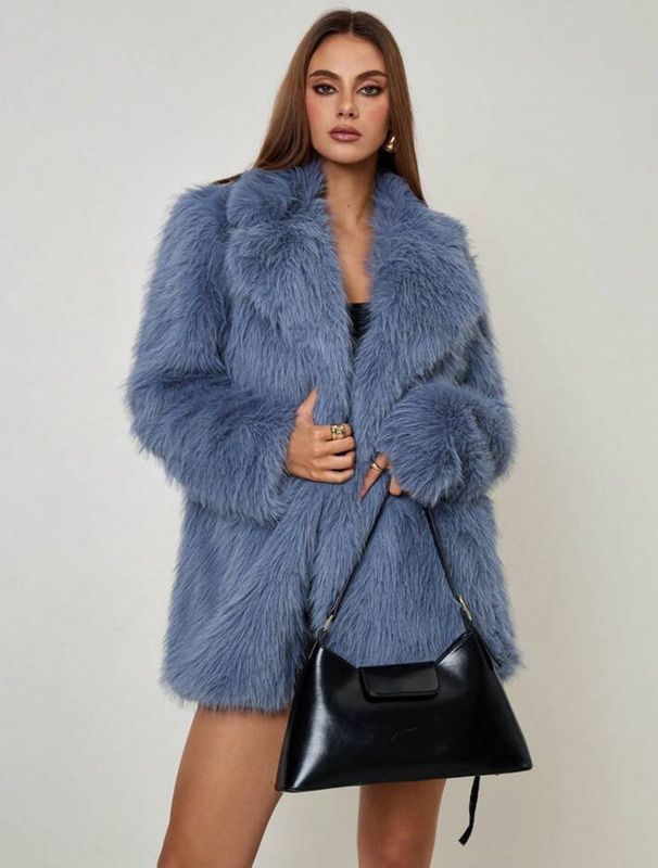 Casaco de pelos azul. Ele é forrado , esquenta bastante .