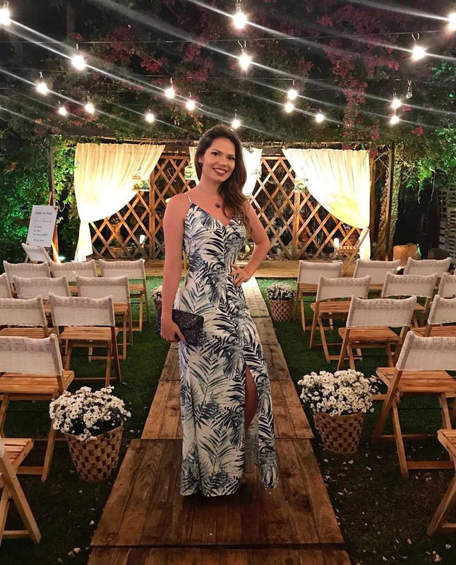 Vestido longo com fenda frontal (alça regulável + bojo) ✨