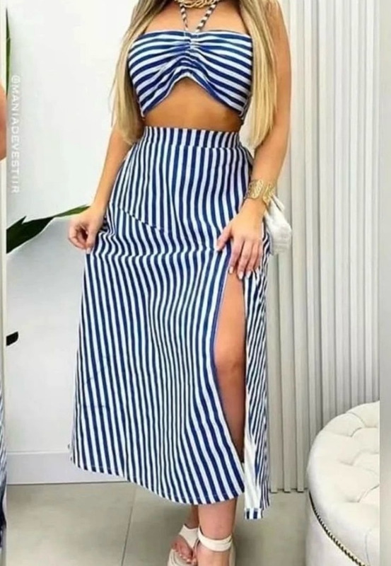 Conjunto cropped + saia longa com fenda.