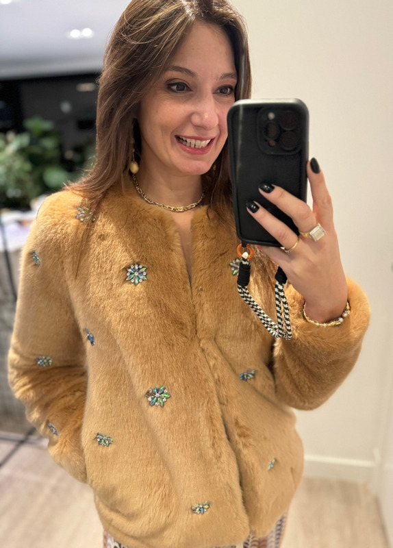 Casaco de pêlo com aplicação de pedrarias bordadas! P na etiqueta mas veste M também. Comprado em Londres.