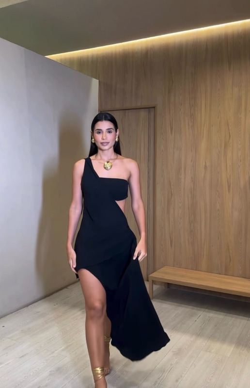 Vestido assimétrico Acompanha top Em linho misto super fluido Veste 34/36 Bem cavado na cintura