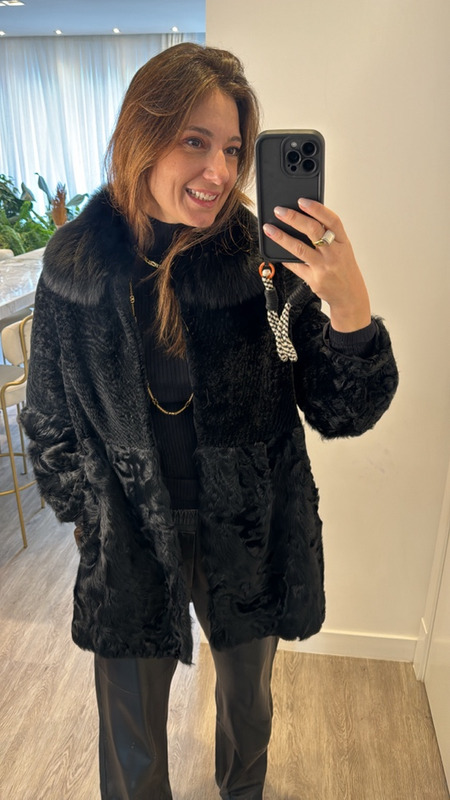 Casaco de pele natural, com mix de 3 texturas de pêlo diferentes, alongado, super estiloso.
