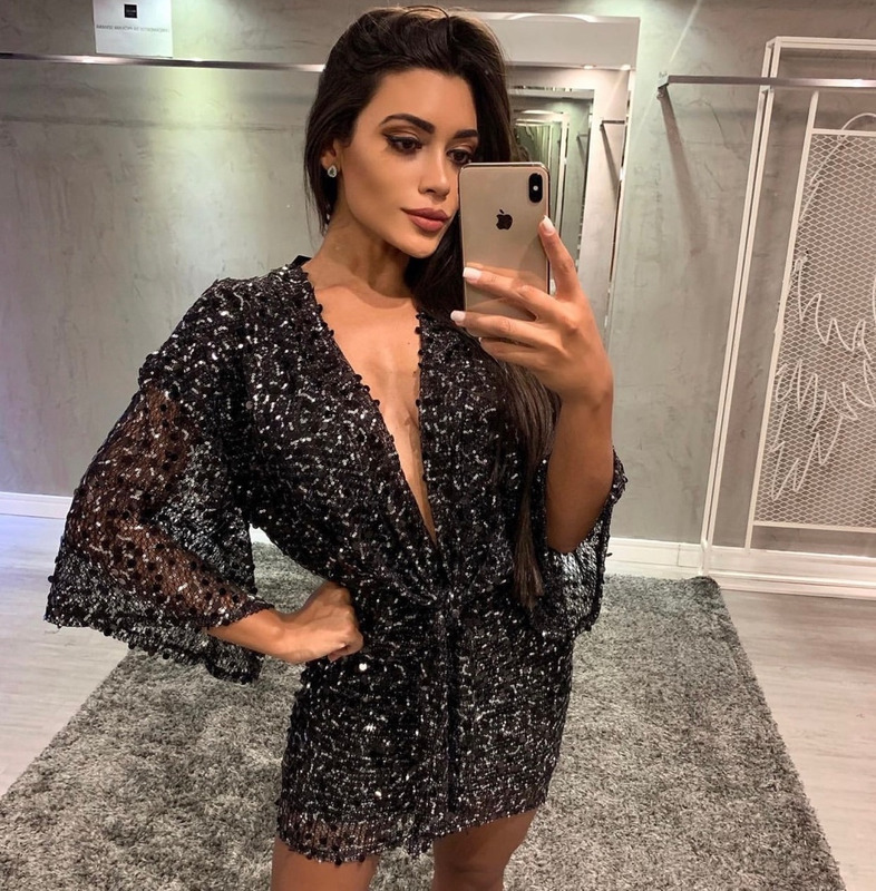 Vestido paetê preto com algumas lantejoulas prateadas, tamanho P. Veste 38