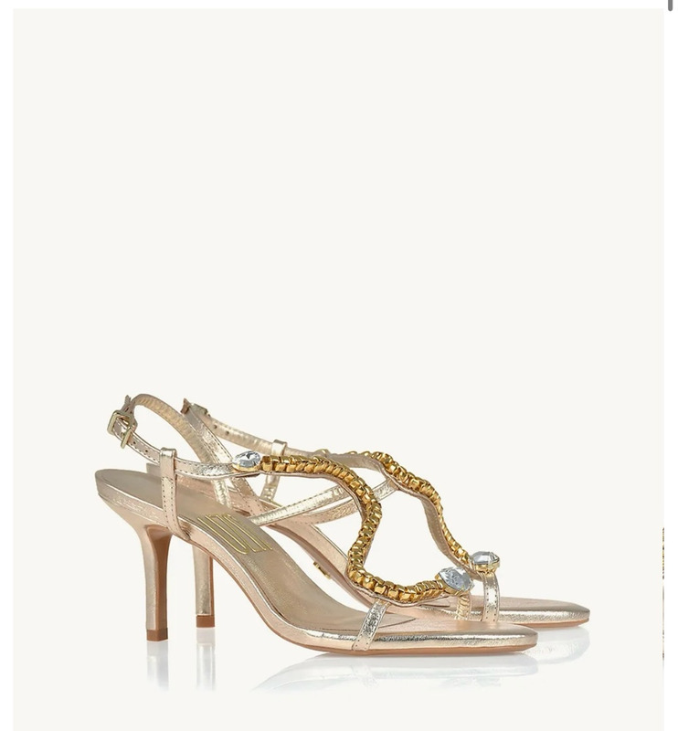 SANDÁLIA SALTO MÉDIO METALIZADO LIGHT GOLD Referência: M26B102A00303 Material: Couro Cor: Light Gold Altura do salto: 7,50cm