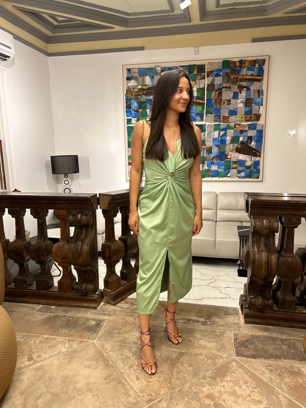 Vestido Midi em Seda Verde Claro, perfeito para eventos Esporte Fino. Tamanho 40-M