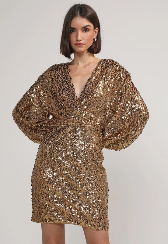 Vestido de paetês dourados com mangas longas bufantes! Modelagem perfeita! Ideal para festas , sessões de fotos e vídeos!