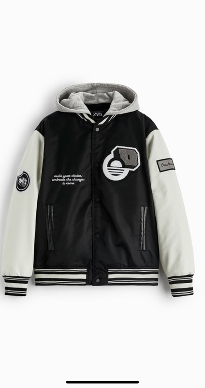 Jaqueta bomber com capuz. Interior levemente acolchoado, gola elástica com capuz e manga comprida. Aplique de patches combinando em contraste. Fecho de ziper frontal. Oversize