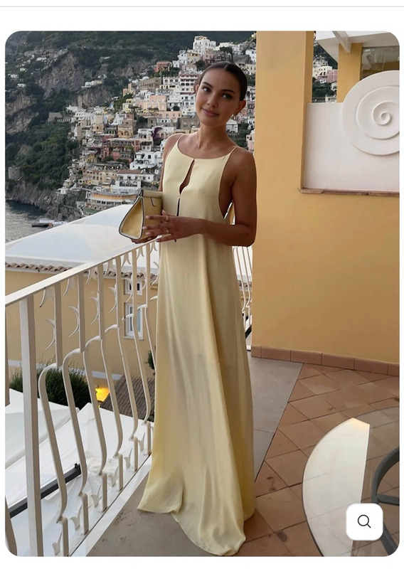 Vestido em seda na cor manteiga claro. Com lindo decote nas costas.