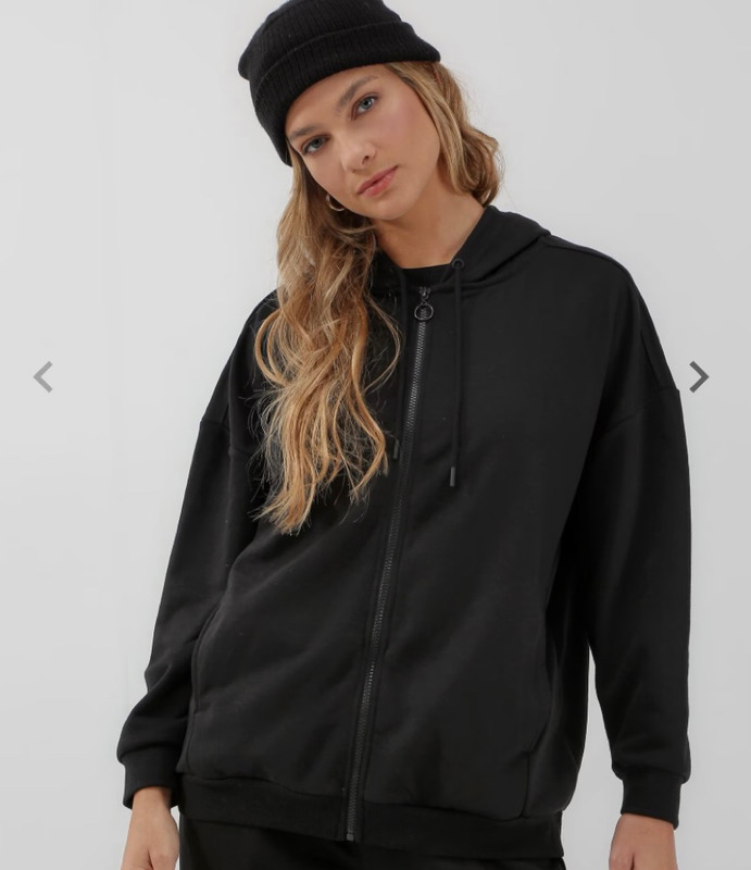Casaco moletom preto, tamanho P. (Veste até M) forma grande ,Efeito camurça Medidas : busto 88; cintura:70 Capuz embutido com ajuste por cordão 2 Bolsos frontais