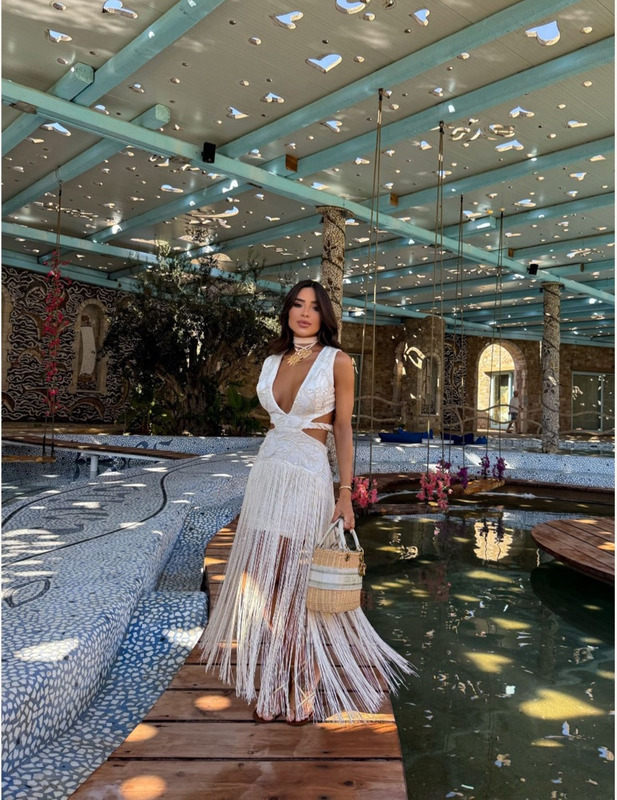 Vestido decote V, decote na cintura e franja Veste 38/40