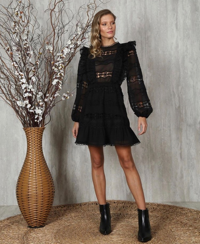 Vestido preto estilo boneca com renda e transparencias Tem saia rodada