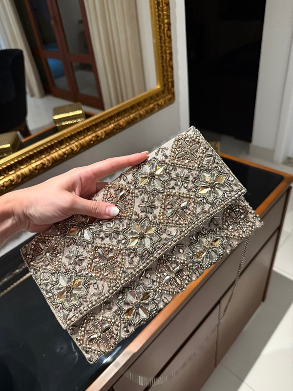 Bolsa carteira com pedraria e brilhantes (ideal para casamentos e eventos formais) cabe iPhone pro max! Ele é prata com dourado, um verdadeiro luxo!