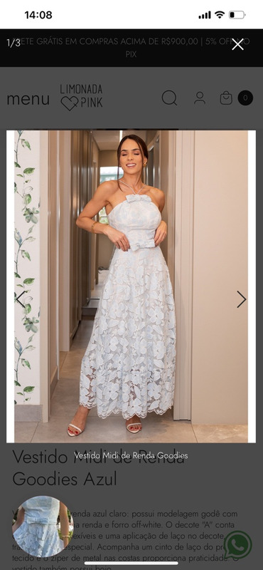 Vestido longo de renda azul claro. Possui bojo no busto. Super delicado e chique. Tamanho P (veste 38)