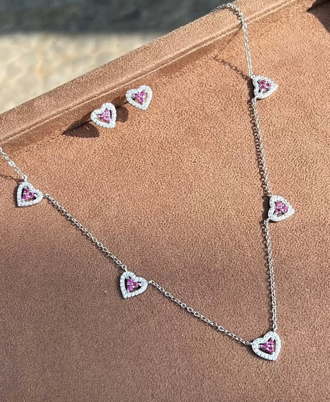 Colar 5 corações + brinco