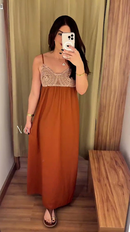 Vestido marrom com bordado lindo lindo! 🤎