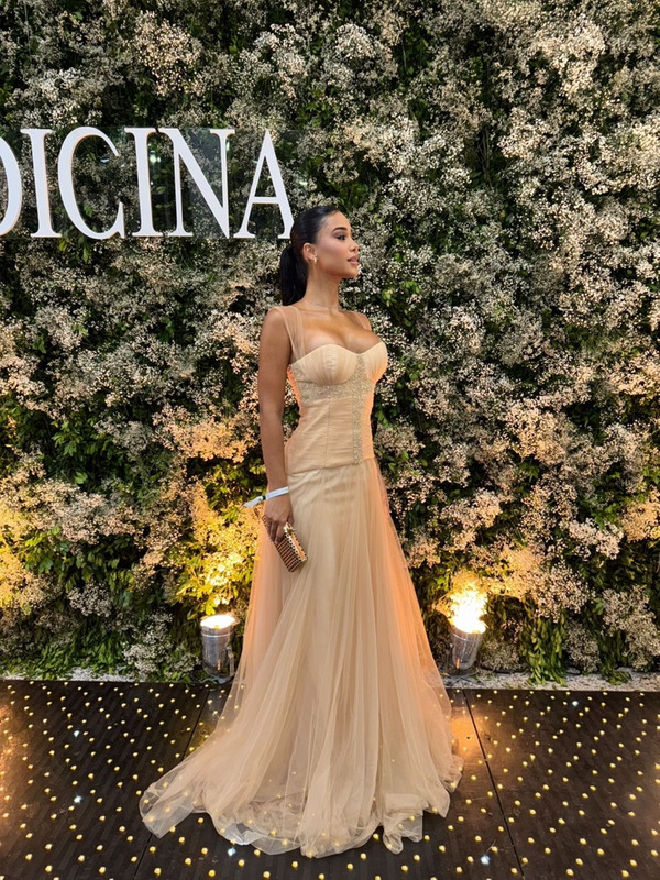 Vestido tule com aplicações de fitilhos transparentes Um arraso para eventos especiais mais arrumados
