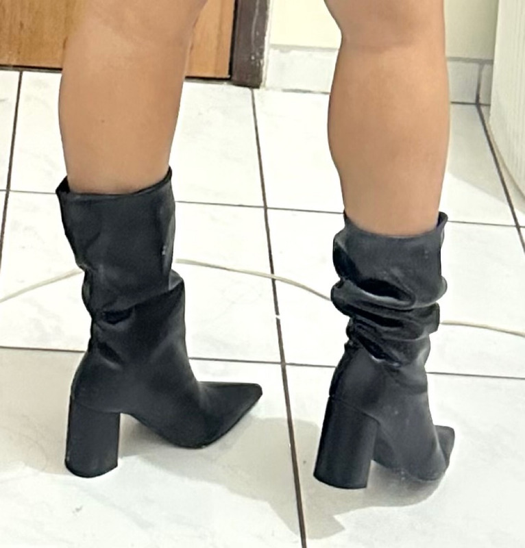 Bota Slouchy Salto e cano médio, bico fino.