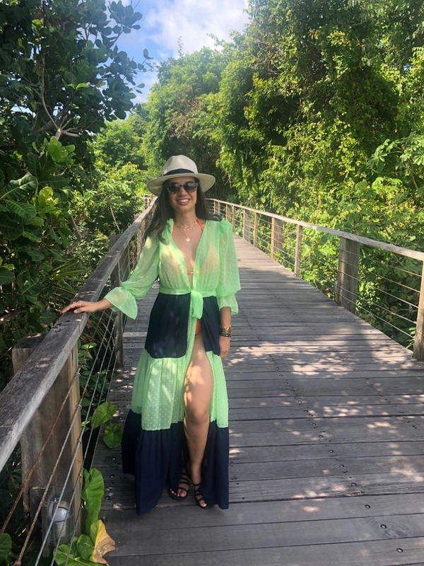 Saída de praia maravilhosa nas cores verde e azul