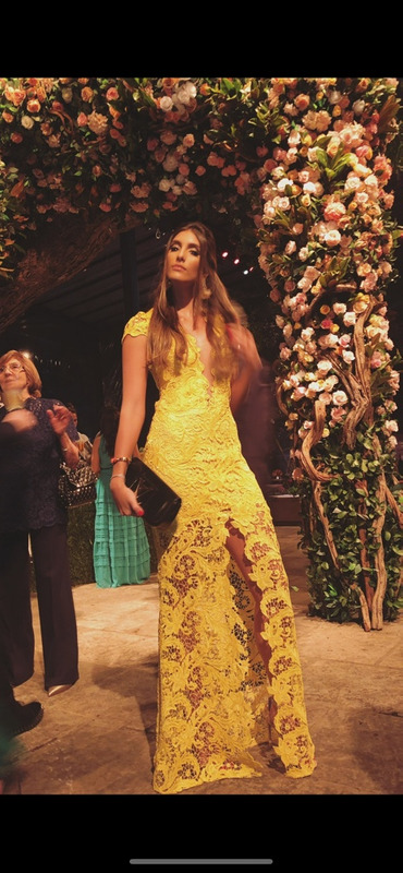✨ vestido amarelo rendado com fenda na frente e decote nas costas ✨