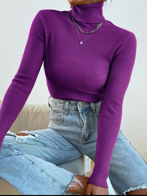 Gola alta, malha canelada. Tamanho p Medidas : ombro :29 cm Comprimento:56 cm, Comprimento da Manga:57 cm, Busto:62 cm, Punho:14 cm, Comprimento do Biceps:20 cm