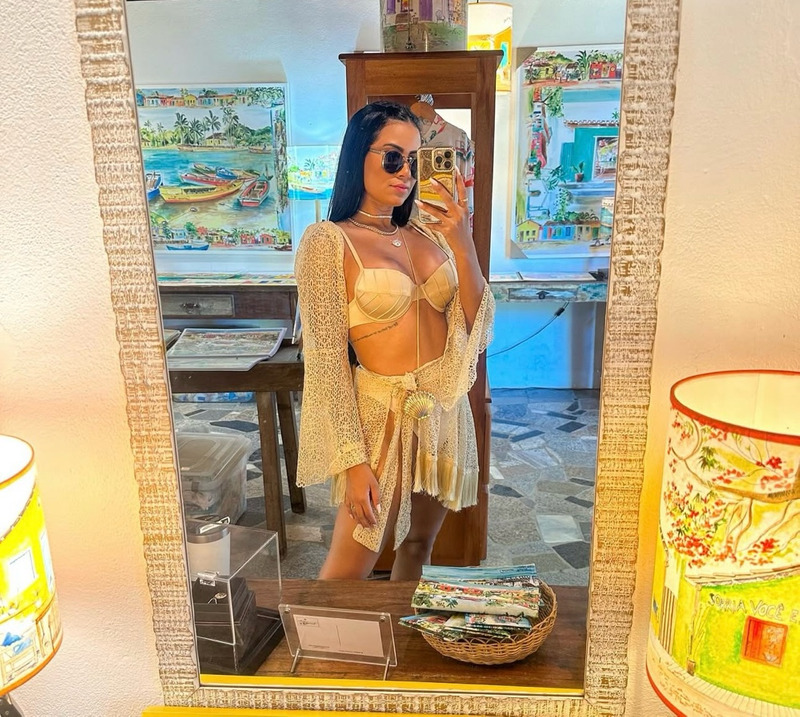 Conjunto 4 peças: biquíni “calcinha alta e sutiã + saída franja + mangas. Biquíni - M “veste 44” Saída - U “amarração” Manga - M “veste P/M” uso opcional